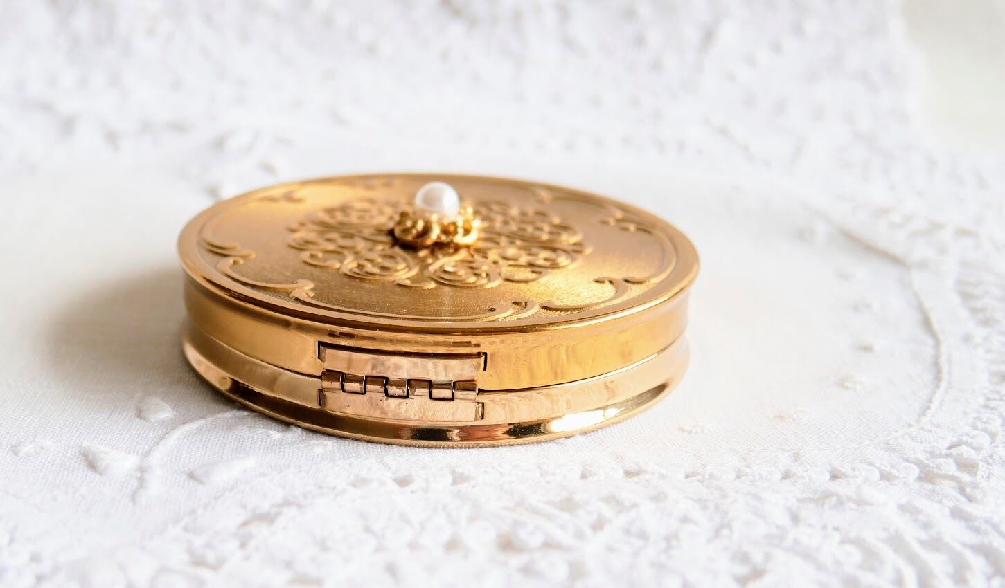 一粒のフェイクパールで飾ったコンパクトケースです。