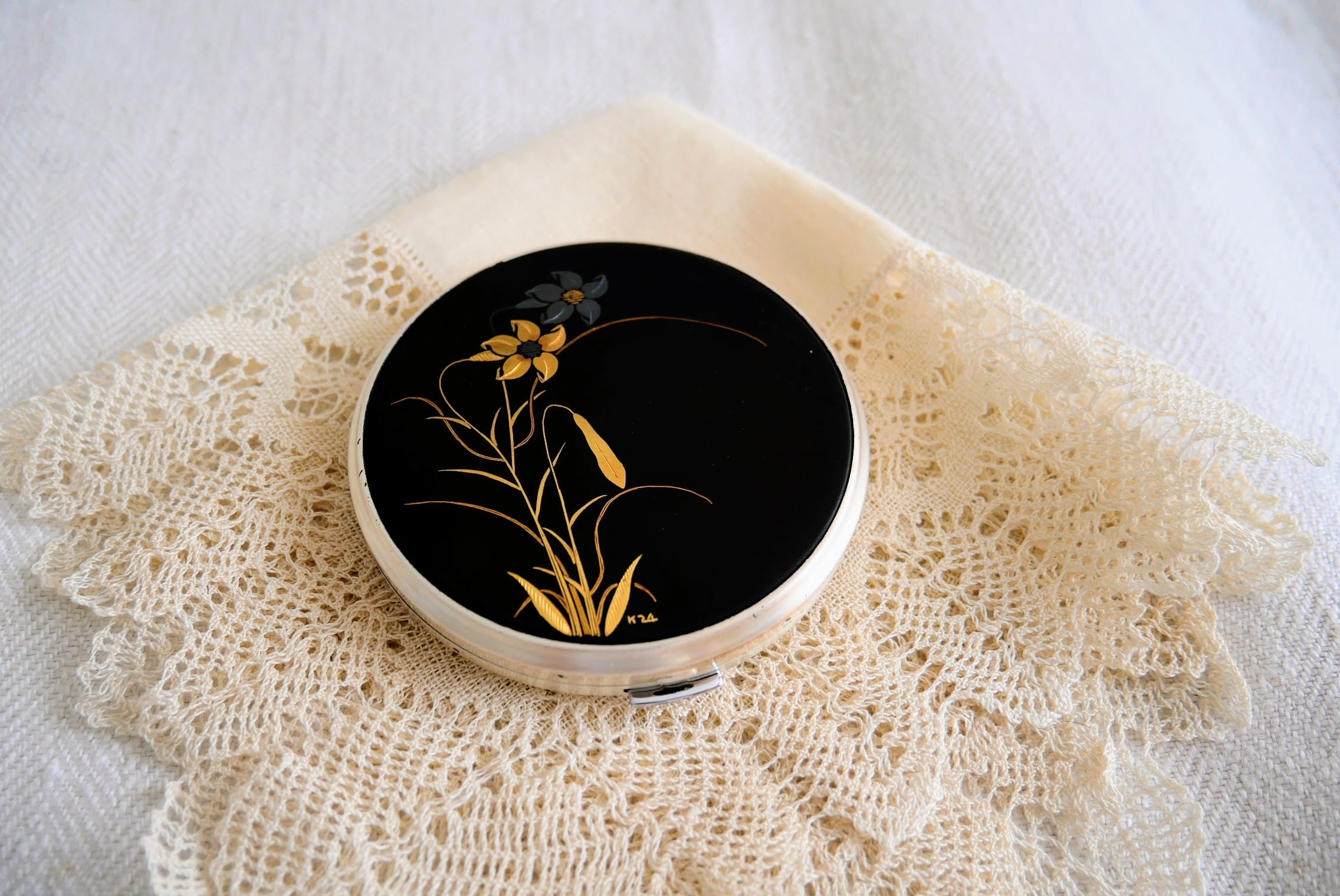 日本製【Pink Lady】 象嵌装飾 百合の絵柄 コンパクトケース