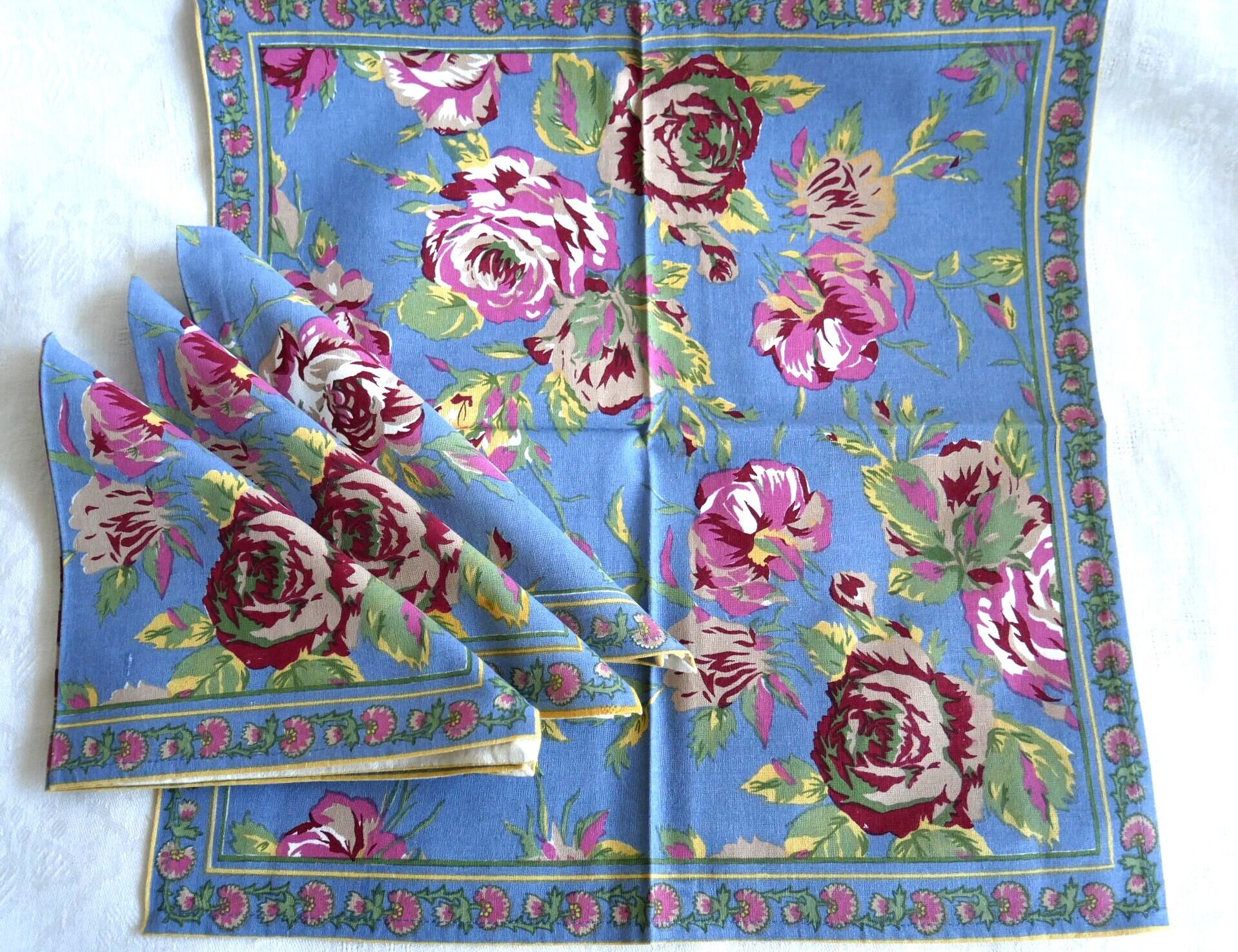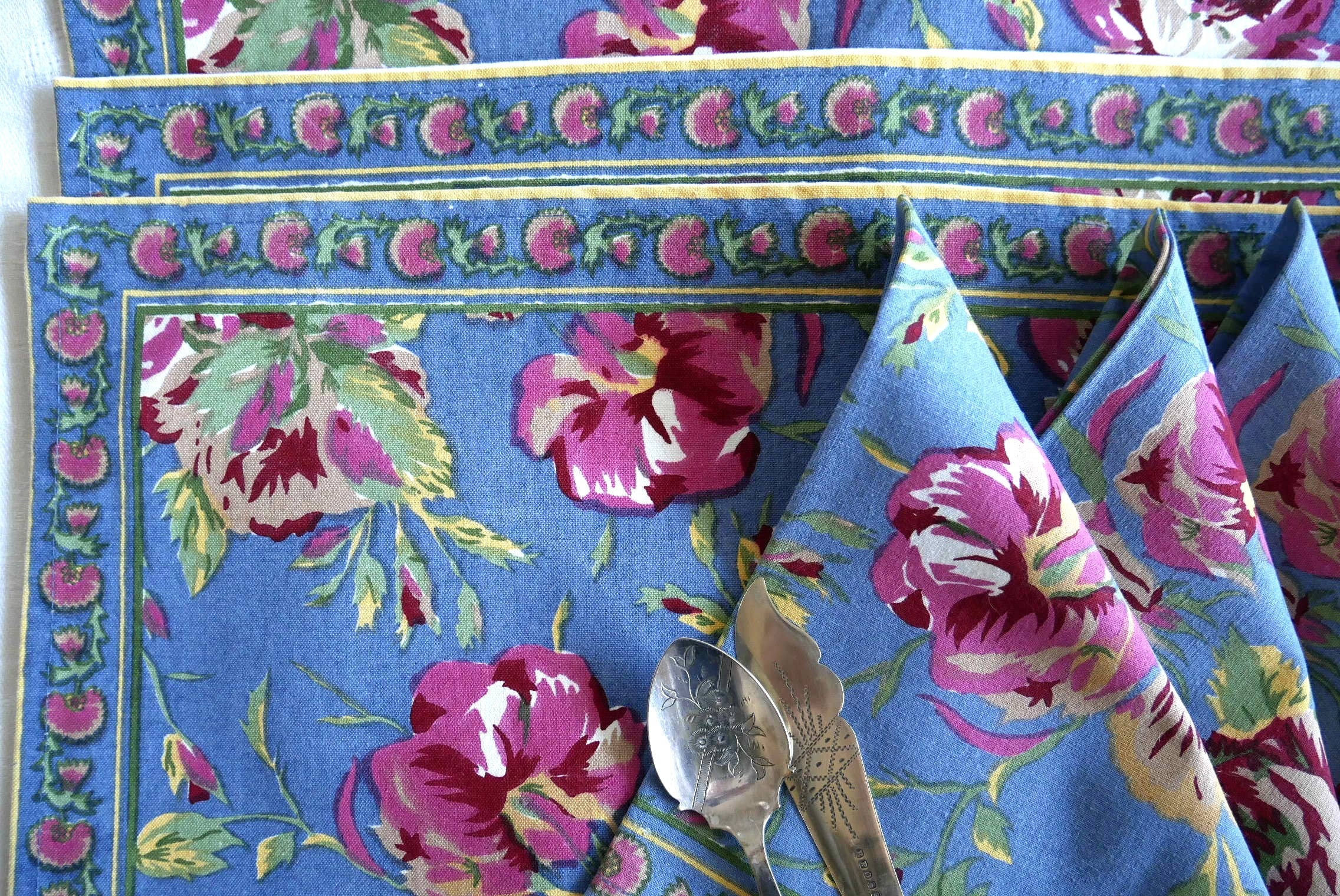 バラ柄のコットンプリント プレースマット&ナプキンのセット インド製コットン100%