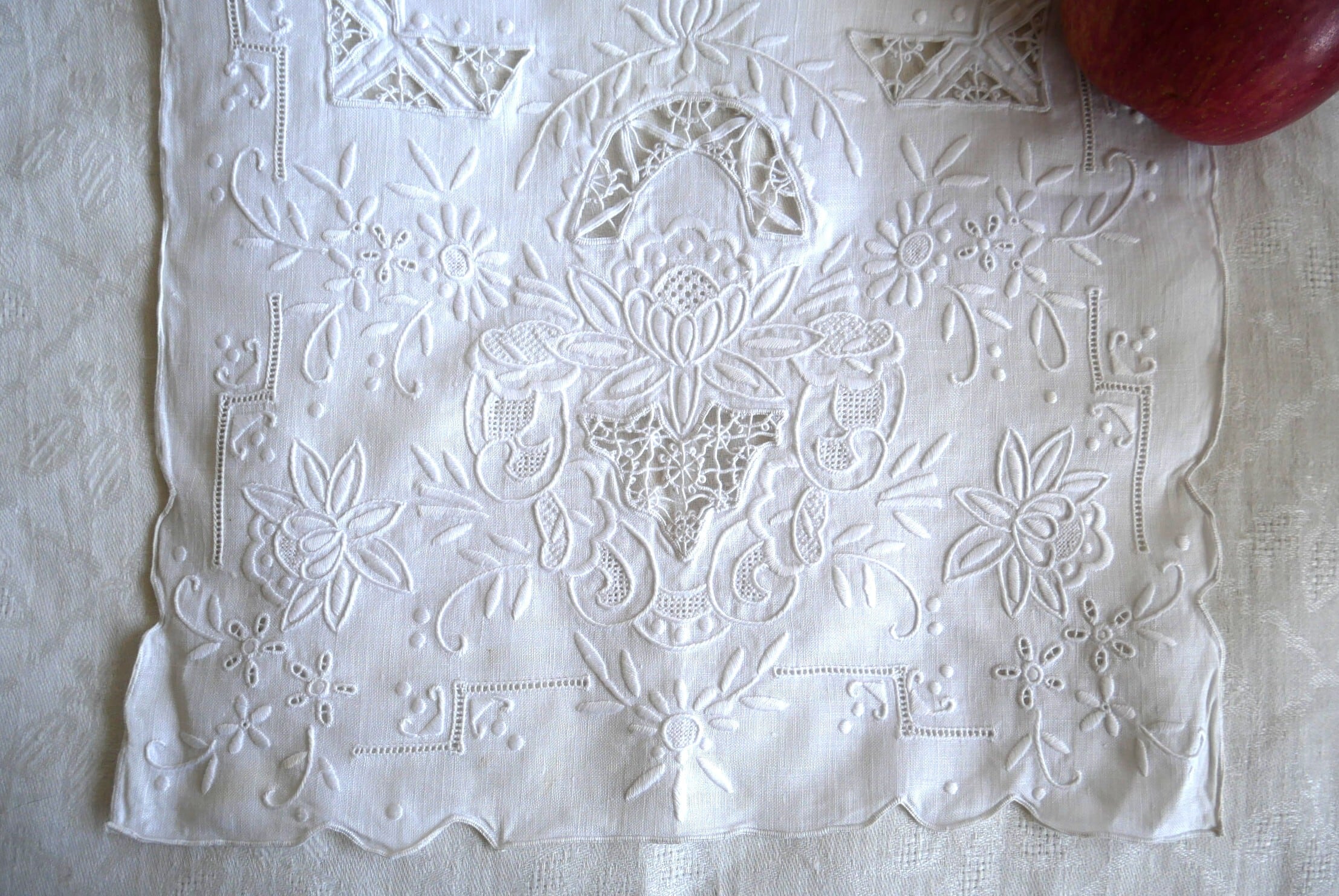 花の図柄 白刺しゅうとタッチングレース飾りのクロス
