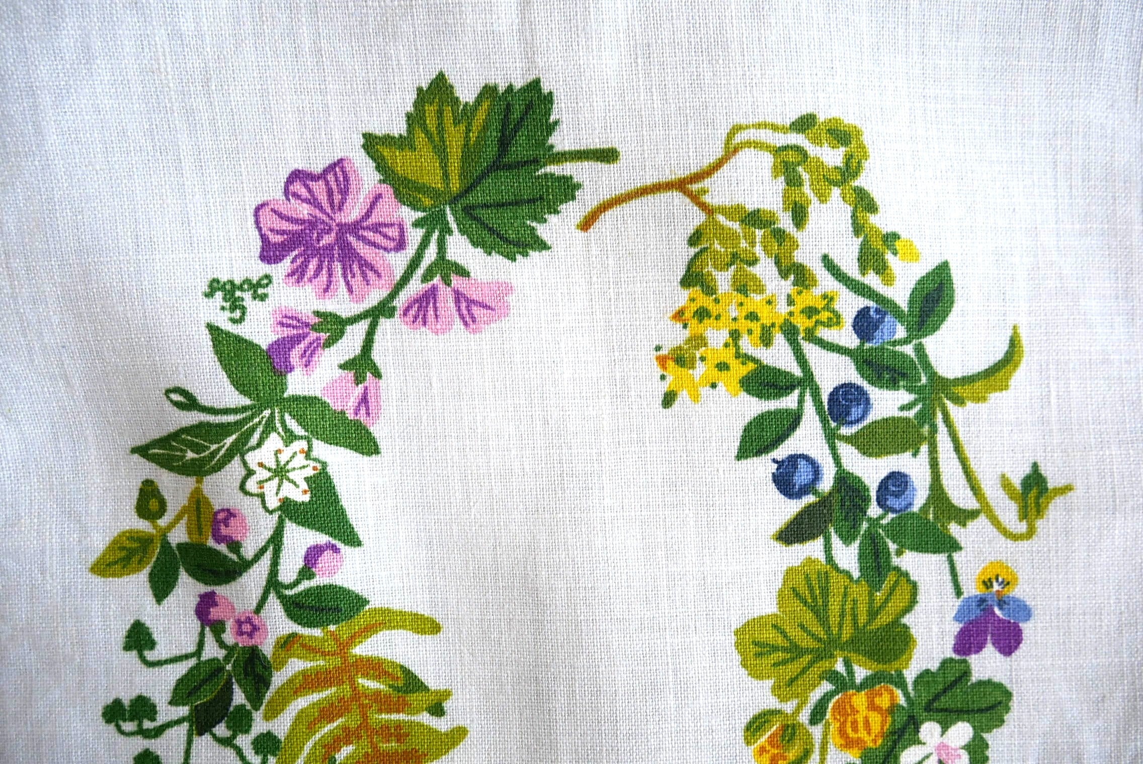 リネン製で、ベリーや野の花など北欧の自然を映す花、植物がプリントされています。