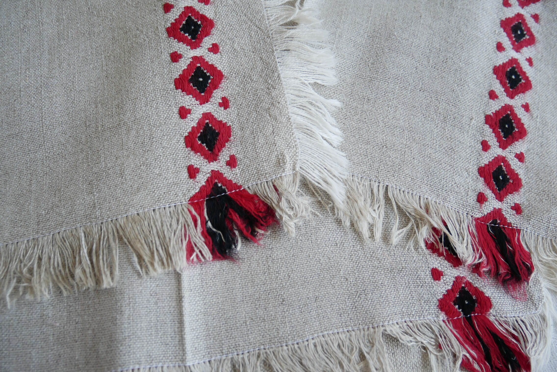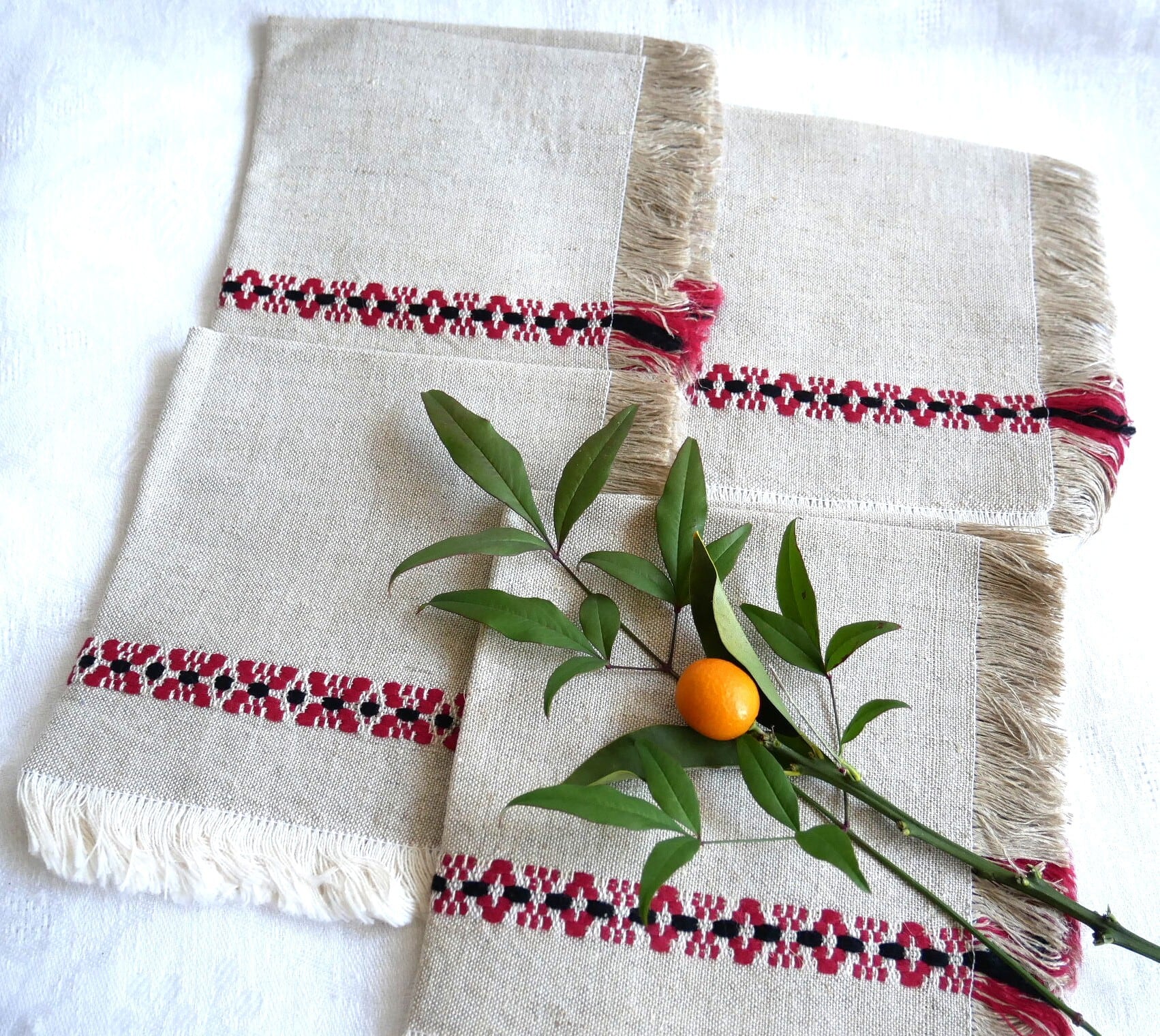 リネン製品を多く生産するポーランド、ロシアなどの地域のヴィンテージだと思われます。