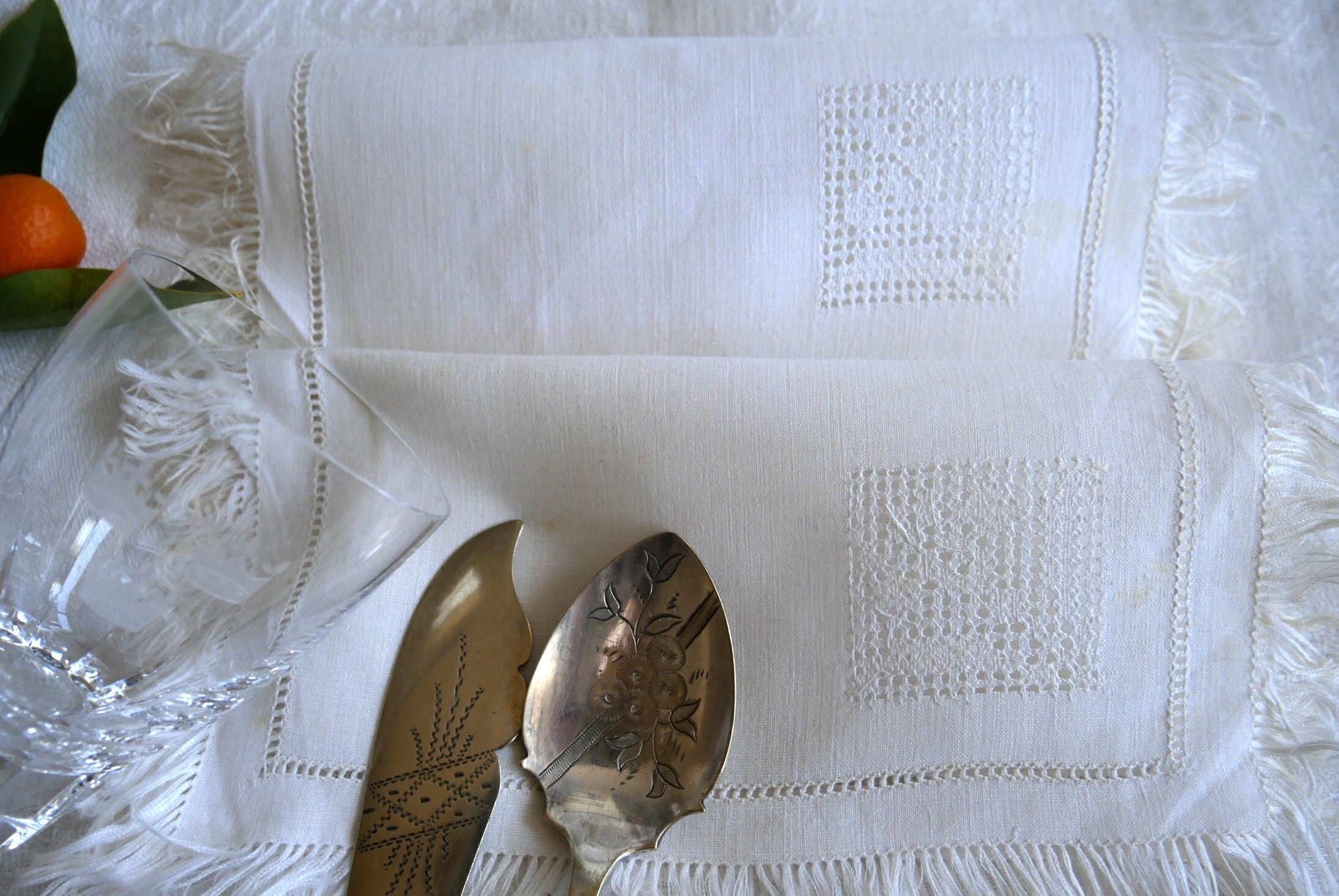 北欧ヴィンテージ リネンのクロス オープンワーク飾り 2枚セット