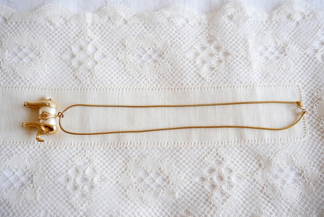大き目のバロックパール風のオーナメントを象に見立てて飾った、