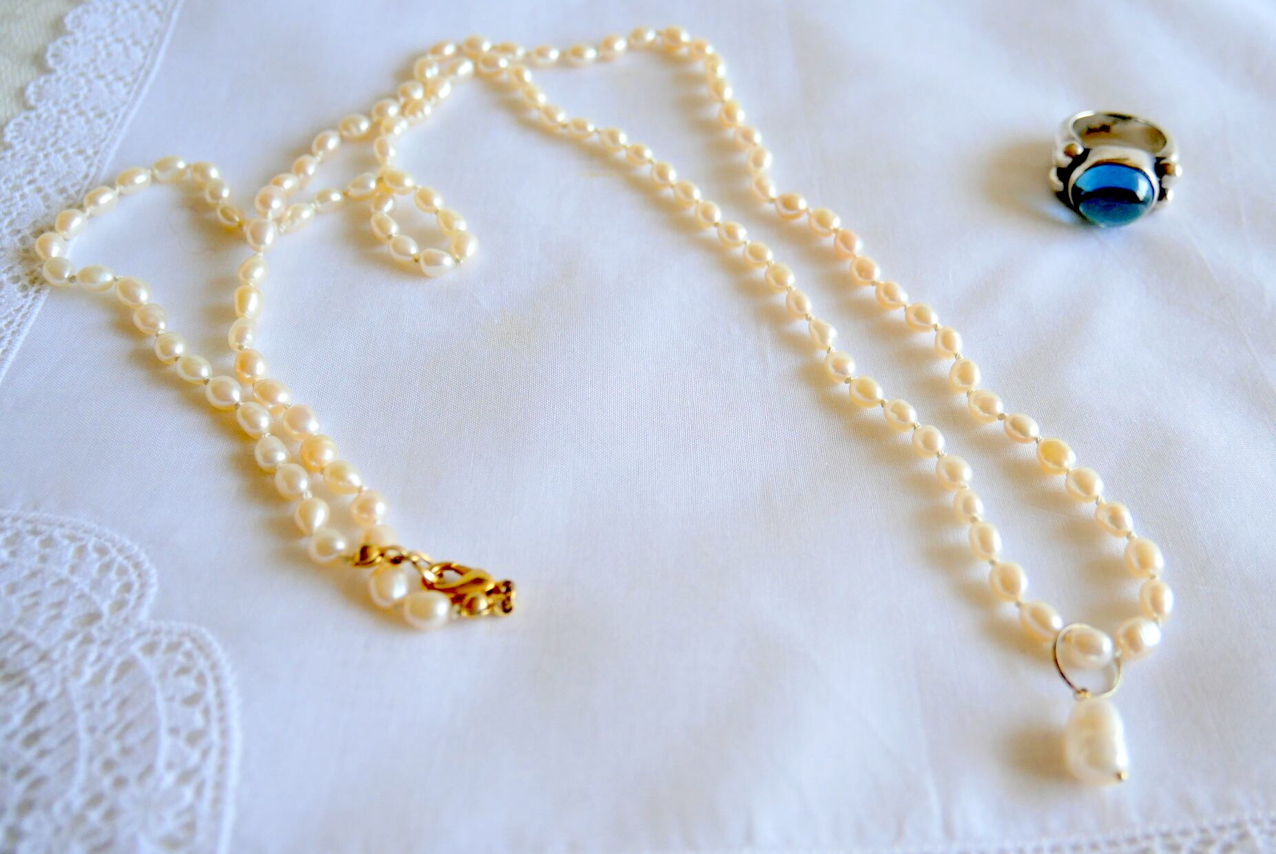 粒がほぼそろった淡水パールを連ねたネックレスです。