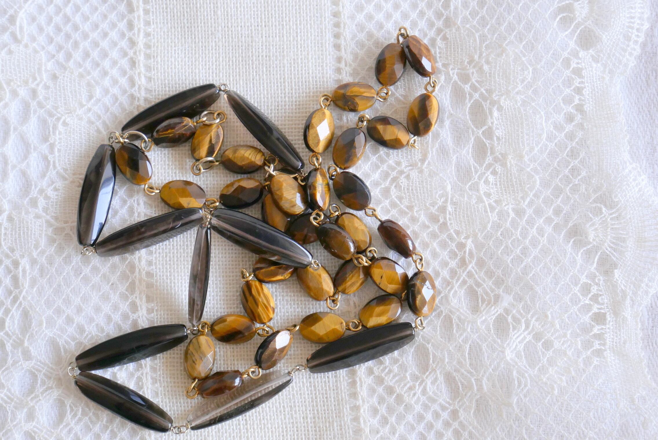 ブラウンの2種のパーツ飾り ロングネックレス【VB】