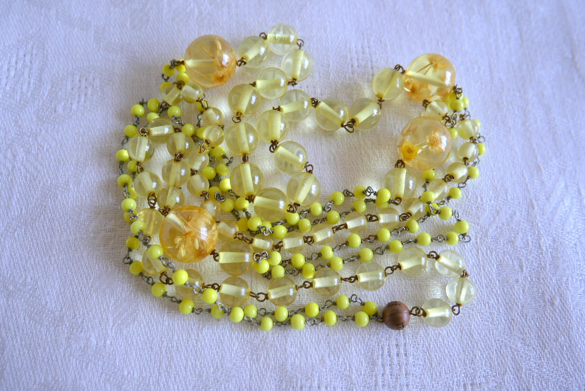 イタリア・ミラノ【Pellini】イエロートーン 自然花飾り ロングネックレス