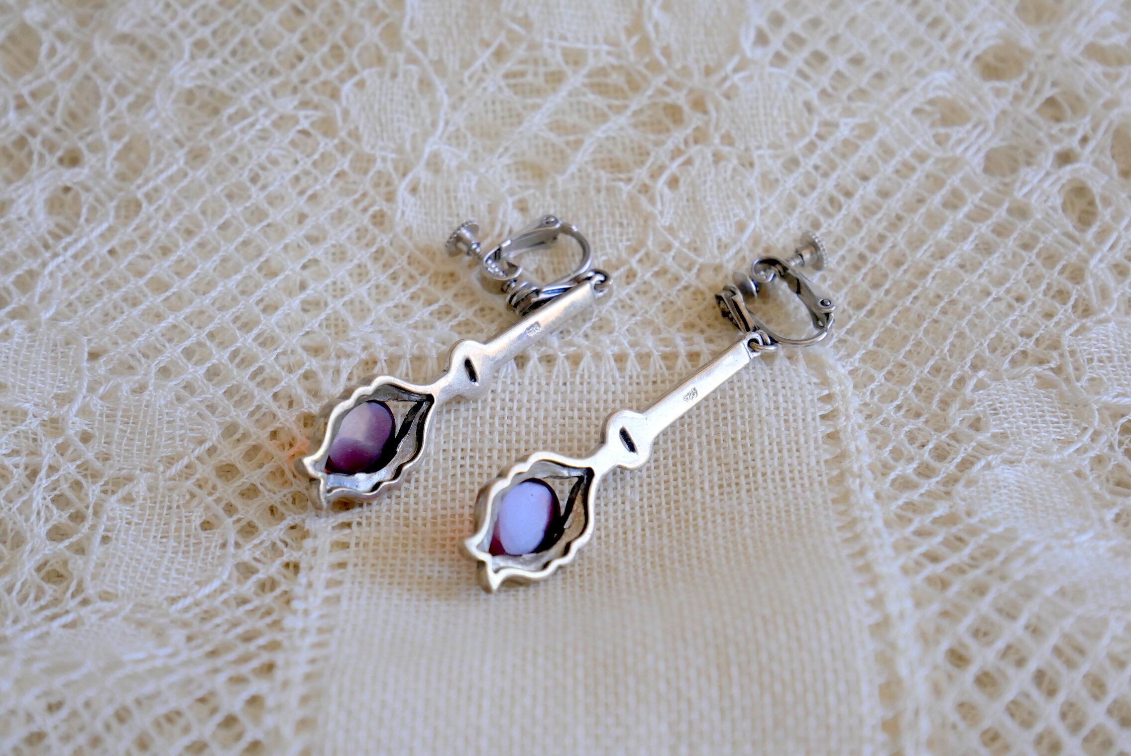 クラシックでエレガントなデザインの、長く揺れるタイプのイヤリングです。